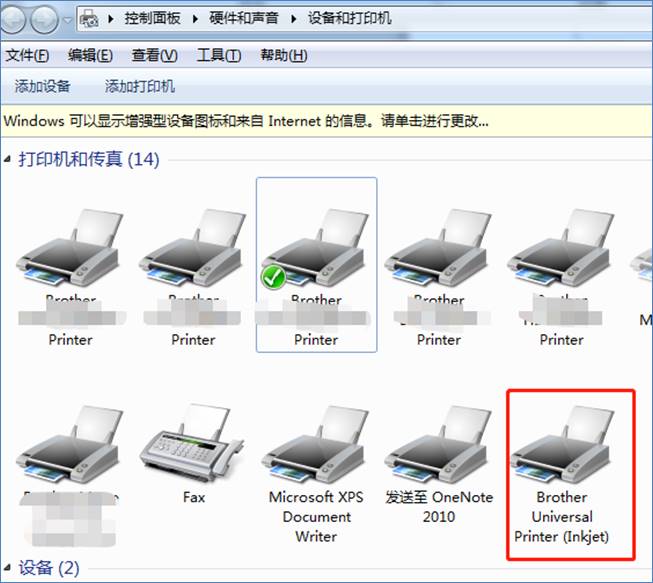 4,安装完毕后,可以在“开始”--“设备和打印机”中,找到通用打印机的图标。
