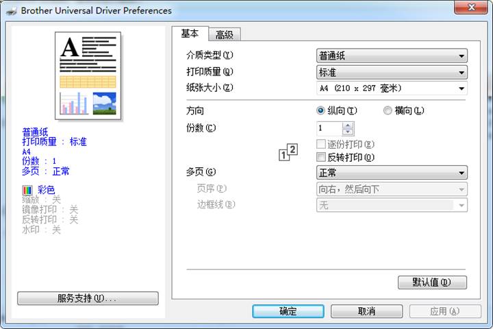 6, 会显示打印首选项的设置页。点击确定退出后,回到“设备和打印机”页面,会发现安装的打印机的图标,以后就可以在打印时,选择该打印机型号开始打印了。