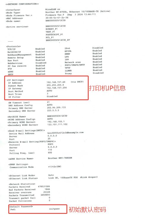 2,在网络配置页的底部(红框处)内容,就是设备的初始PWD密码。