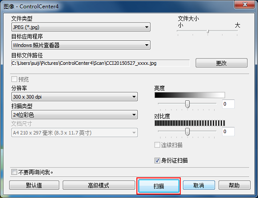 ControlCenter4(v4.2.420.1及以上版本)中的[ID卡扫描/身份证扫描]功能,可以将身份证的两面扫描至一个图片中