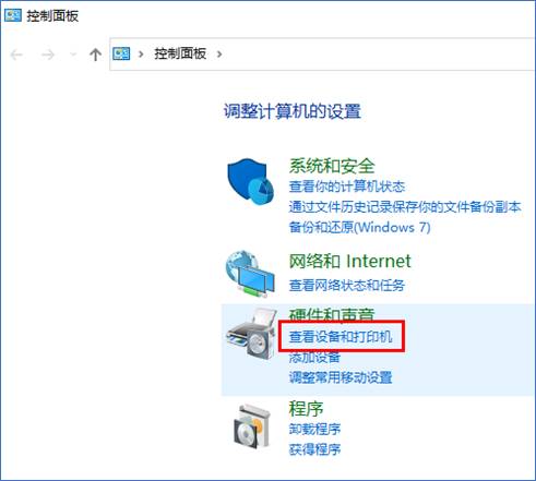 4,在控制面板中,找到并点击打开“查看设备和打印机”