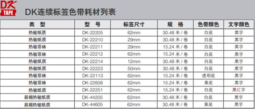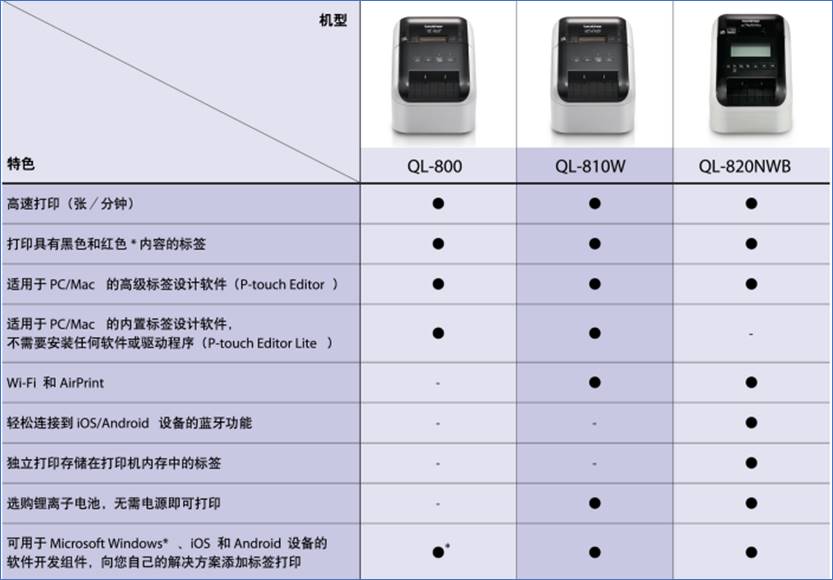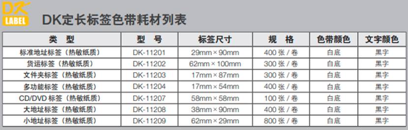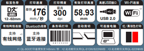 QL-800\QL-810W\QL-820NWB规格,标签规格