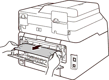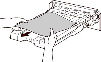 6.用双手慢慢拉出卡在设备后部的纸张。