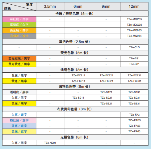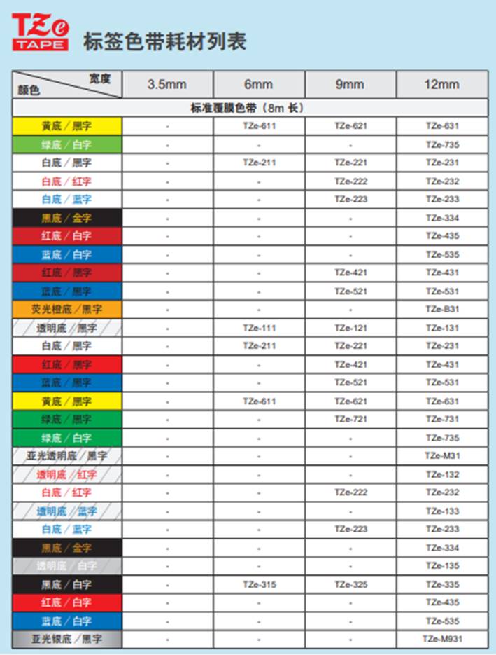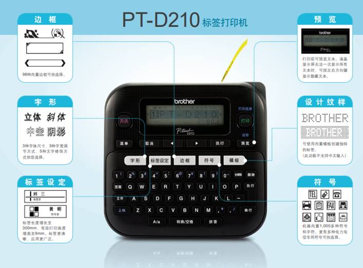 PT-D210技术规格,标签色带规格